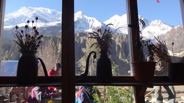 traditionnelle. Du gite de Manang, vue imprenable sur l'Annapurna 3 et le Gangapurna. |