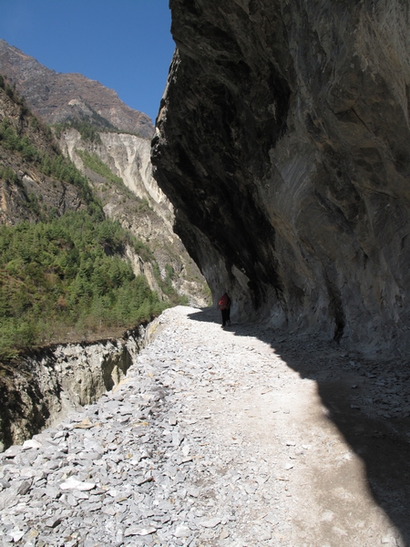 Une piste qui s'allonge chaque année un peu plus rend le trek moins sauvage qu'auparavant. Heureusement on peut l'éviter parfois en prenant un sentier ou en s'élevant au-dessus du fond de la vallée en faisant un détour très recommandable à partir de Pisang vers Gyaru, Ngawal, puis Manang point d'arrivée de la piste actuellement. |